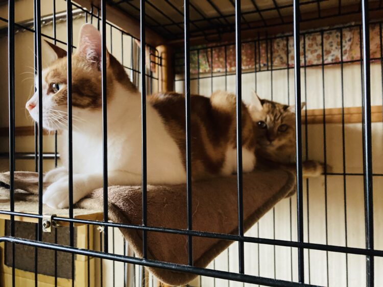 1~2週間後、落ち着いた頃から、少しずつ他の猫と面会させます。